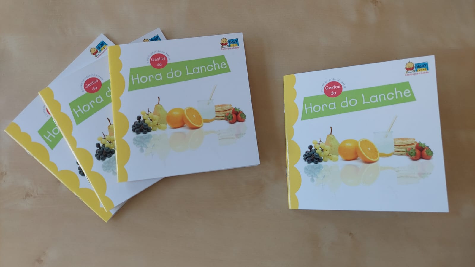 - Livros em cartão e em papel grosso maleável (Livros: Hora do Bacio e Hora do Lanche)